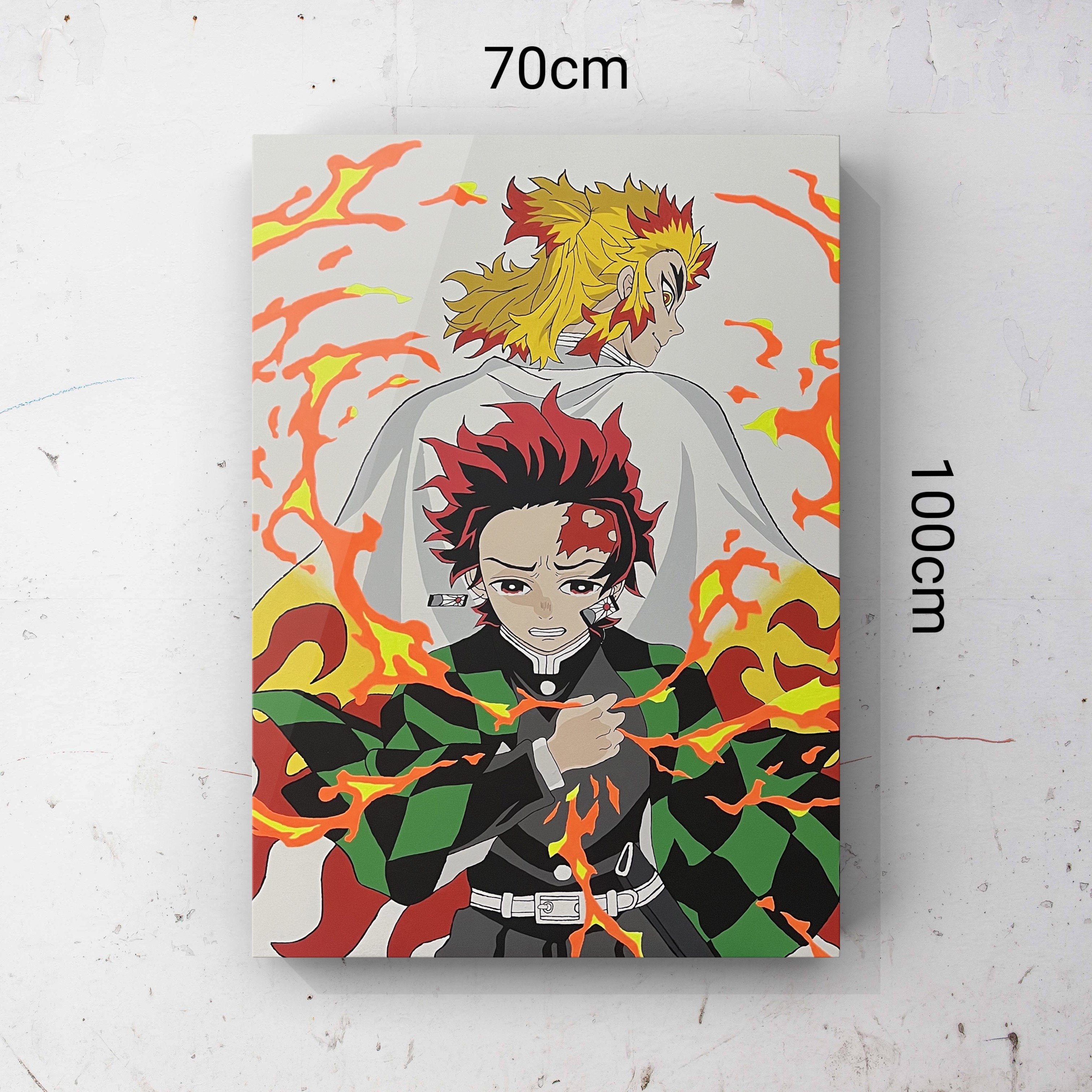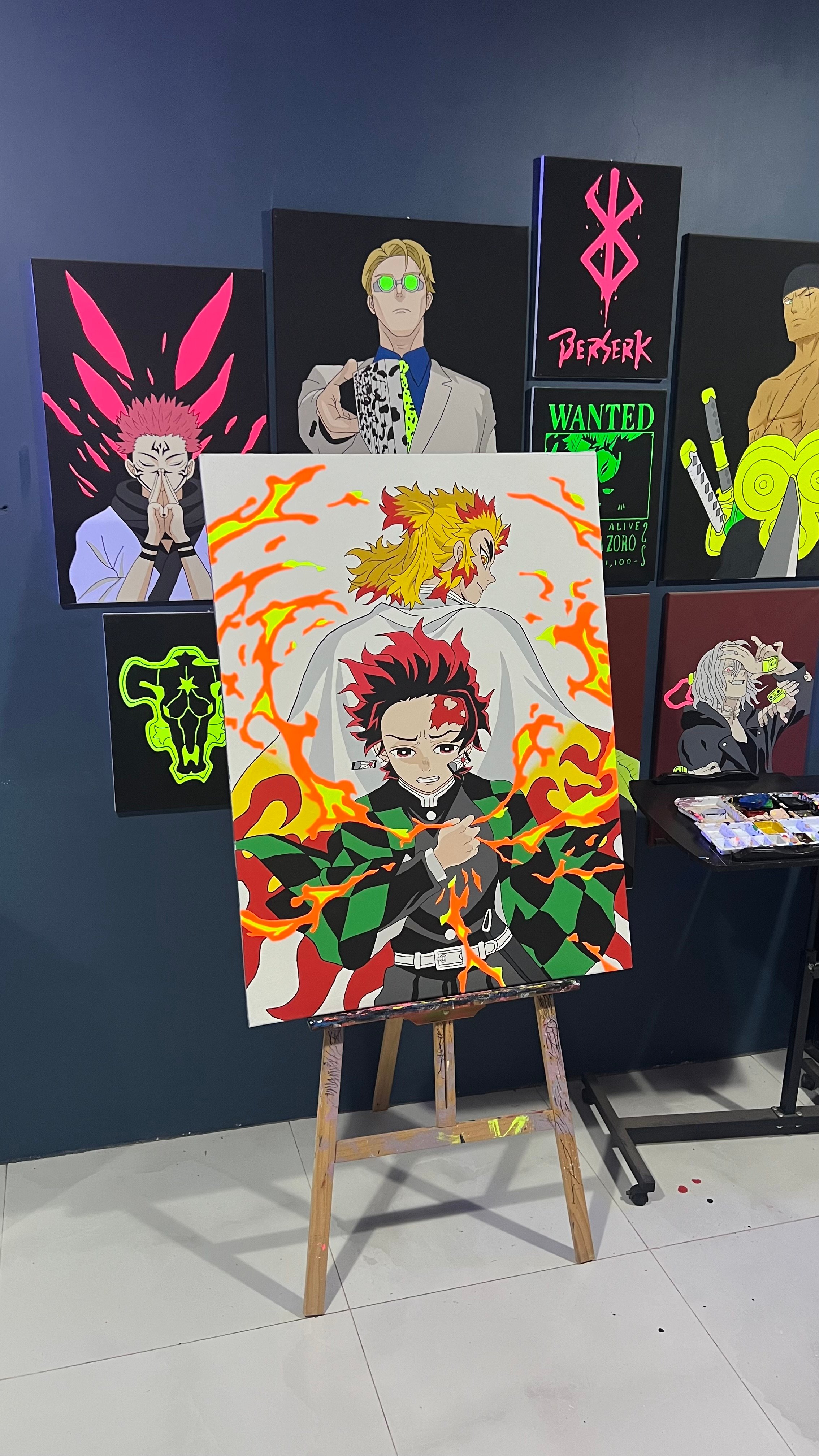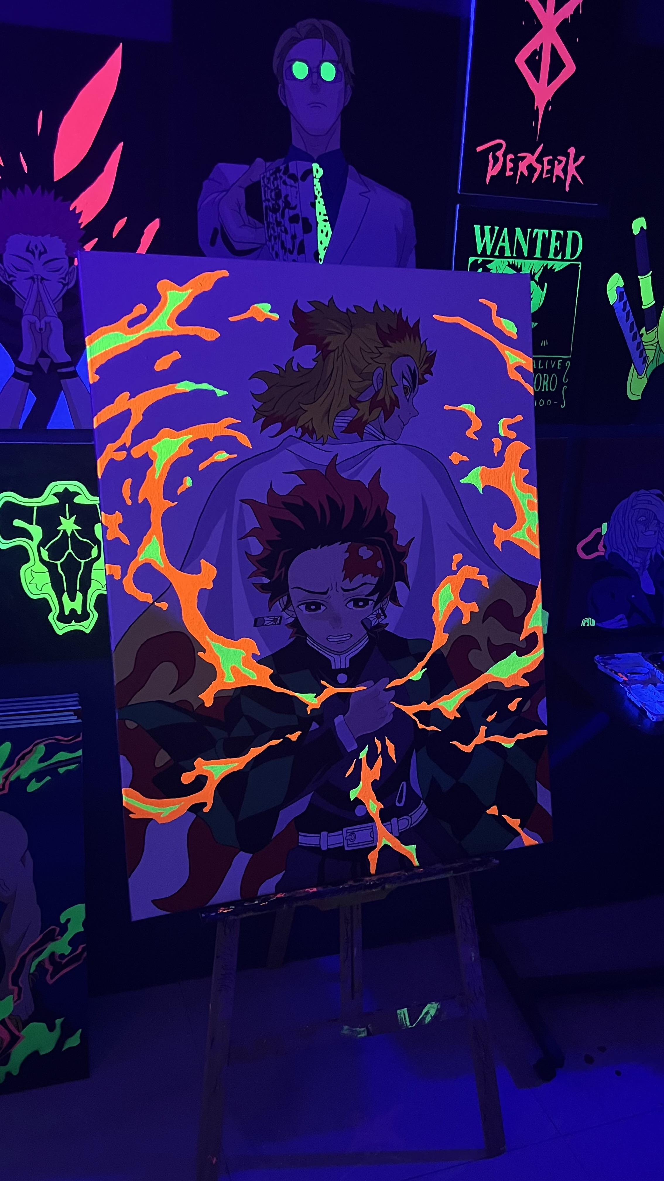 رسمة تانجيرو وكوجيرو شغل يدوي دقيق على لوحة بألوان فسفوريه عاكسه