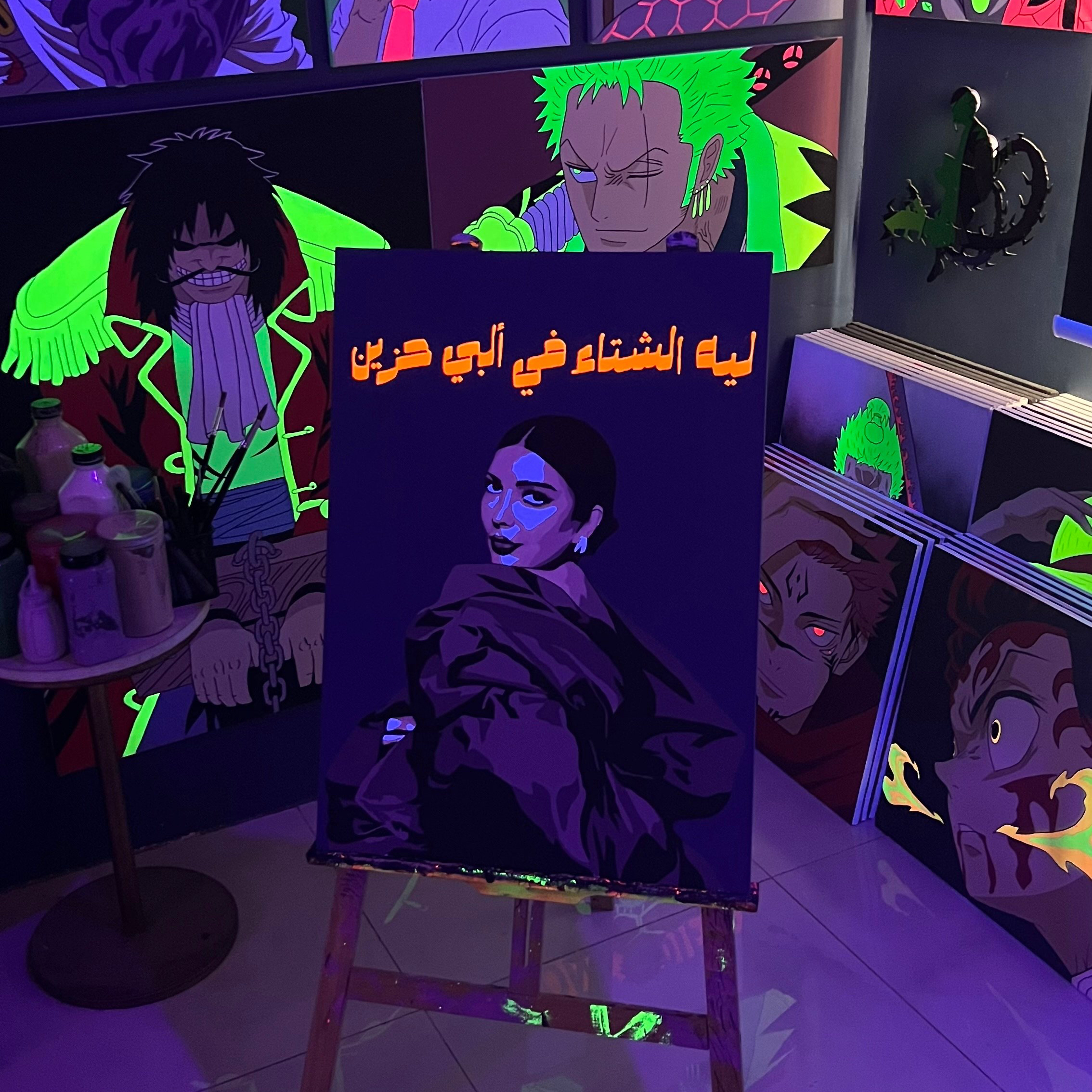 ملاحظة : لكي تعكس او تظهر الرسمة مضيئة تحتاج الى لمبة بلاك لايت أو ليد ازرق