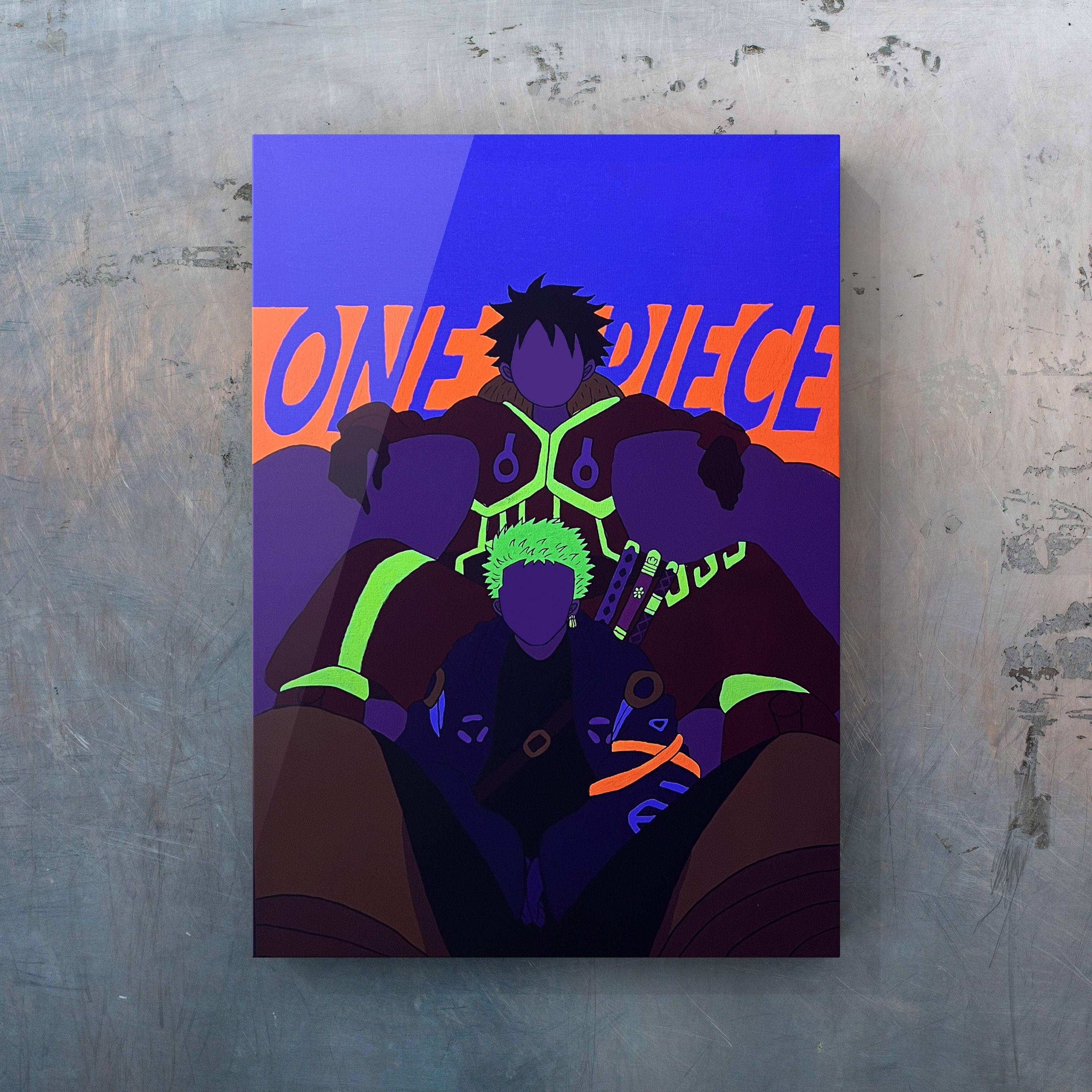 رسم يدوي دقيق على لوحة بألوان فسفوريه عاكسه